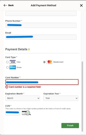 Nhập thông tin thẻ tín dụng