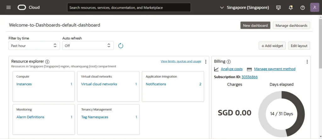 Để nâng cấp lên tài khoản Pay As You Go, đầu tiên vào trang Dashboard của Oracle Cloud