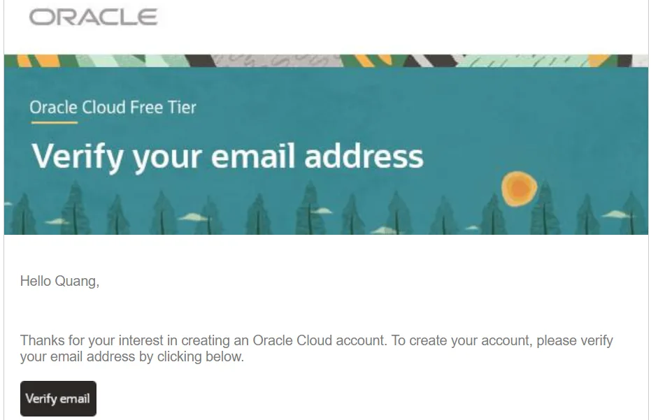 Trong email được gởi từ Oracle, nhấn vào “Verify email” để xác thực