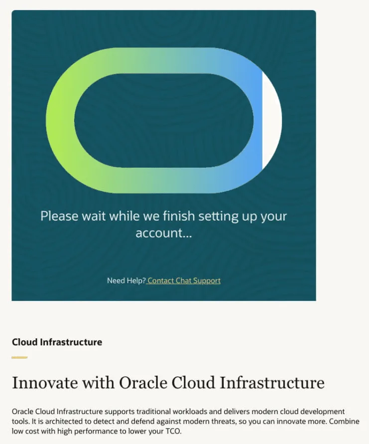 Tiếp tục đợi Oracle thiết lập tài khoản